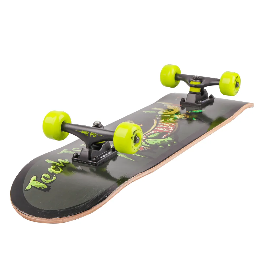 ДЕРЕВЯННЫЙ СКЕЙТБОРД TECH TEAM BAD BOY 2020 занимает лидирующие позиции в сегменте продаж. Классический вариант скейтборда понравился простотой пользования и надежности. Верхняя часть скейтборда – деревянная, также имеются элементы прочного алюминия. Сочетание салатового цвета с элементами дерева делает доску современной и заметной на фоне других участников движения.