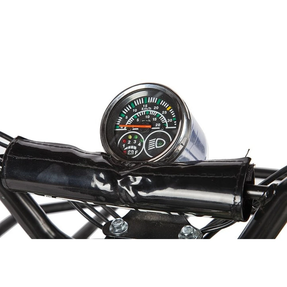 Электроквадроцикл имеет мощность 1000 Вт, работает с рабочим напряжением 36 В. Прочная надежная рама способна выдерживать нагрузку в 60кг. Передняя и задняя амортизация обеспечивает плавность движения при езде по ухабистой местности и бездорожью.