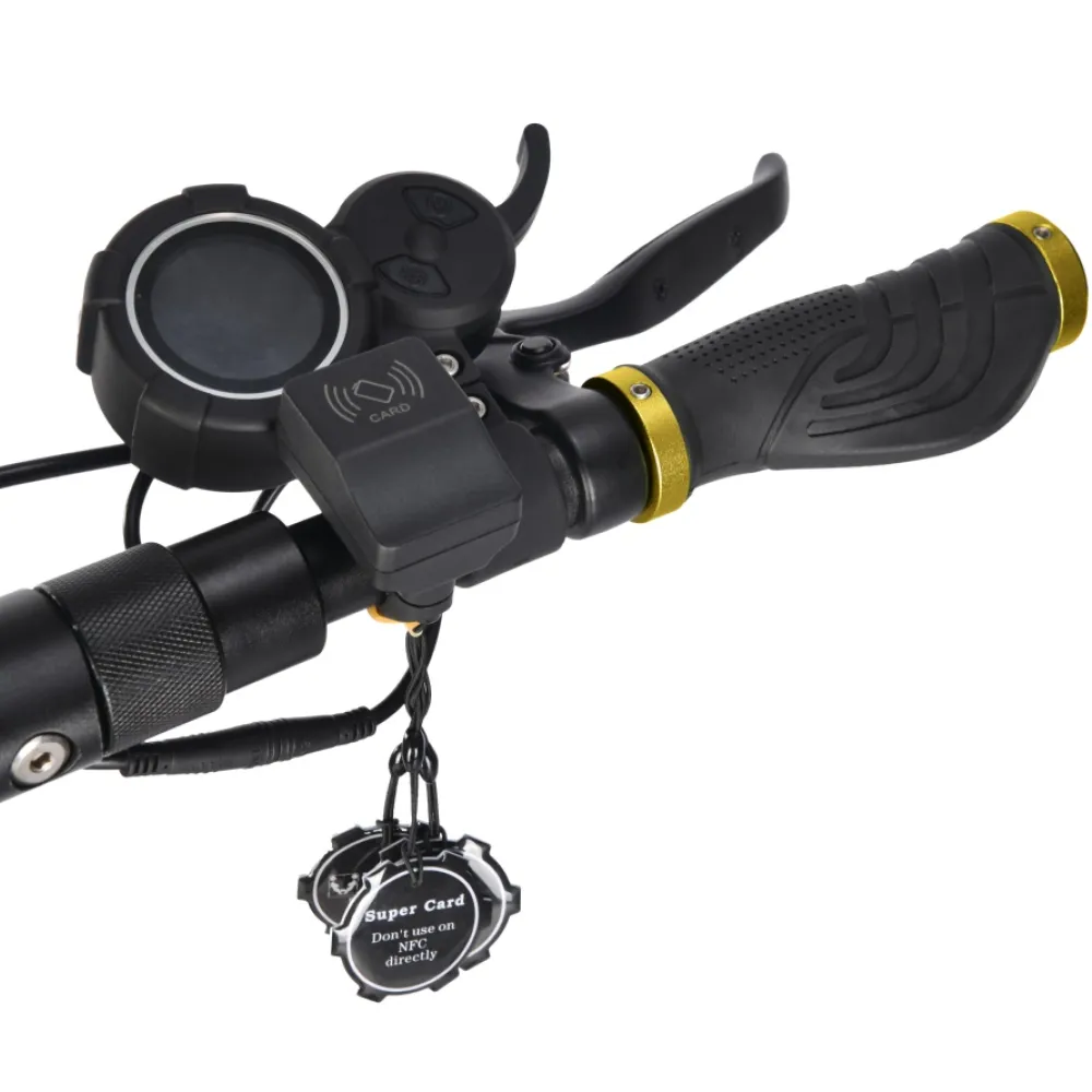 Здравствуйте, Игорь! Включение и выключение самоката происходит через NFC метку, в комплекте их 3шт. Если у Вас остались вопросы по электросамокату, с радостью на них ответим!