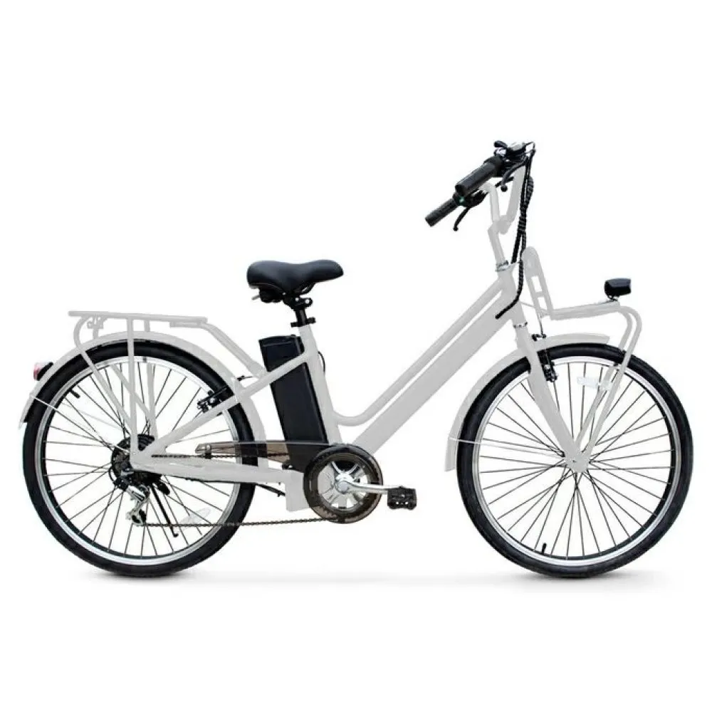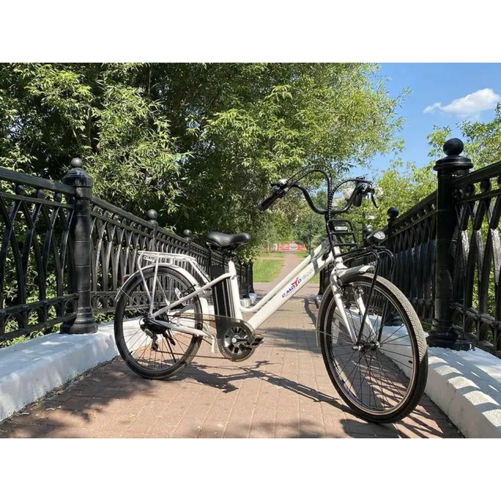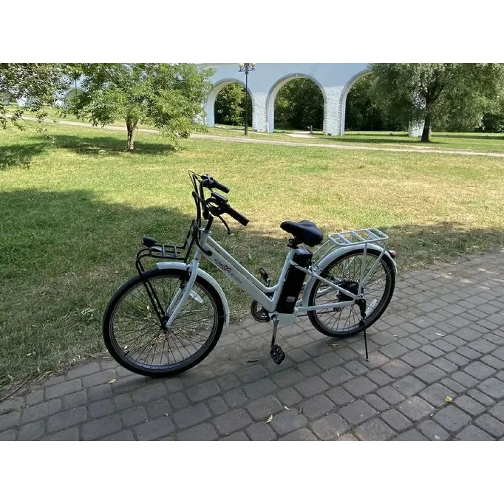 Электровелосипед CMoto Classic белый – предназначен для ежедневной эксплуатации в черте города мужчинами и женщинами. Электровелосипед грузоподъемностью 110 кг оснащен цельной стальной рамой. Наличие переднего и заднего багажника увеличивает степень комфорта, высвобождает руки, допускает перевозку небольших грузов. Для покупки и оформления заказа по приемлемой стоим ости предлагаем сделать телефонный звонок менеджеру интернет-магазина или связаться с ним в онлайн-чате.
