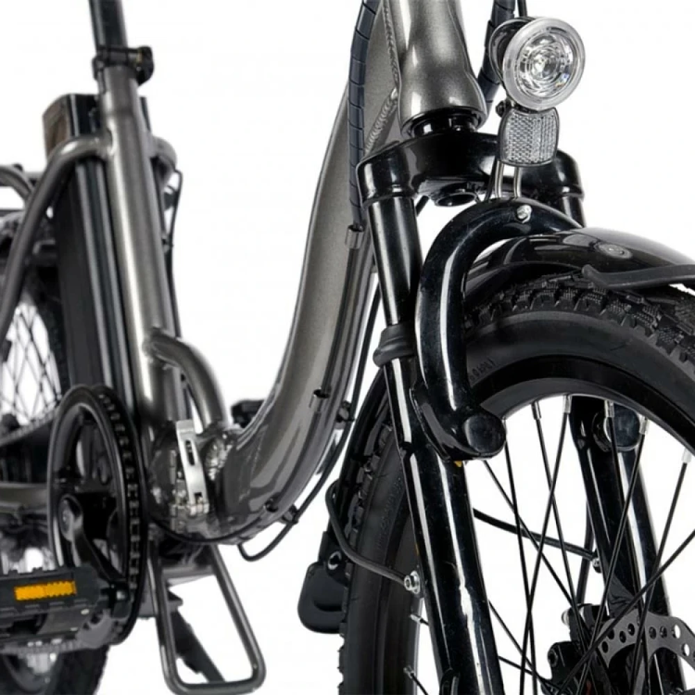 Алюминиевая конструкция рамы – складная, рассчитана на максимальную грузоподъемность до 110 кг. Благодаря современной системе трансформации техника в течение пары минут достигает минималистичных размеров. С такими характеристиками модель удобная как в путешествии, так и при хранении. При мощности электродвигателя 350 Вт и максимальном разгоне скорость составляет 30 км/час, а заявленный производителем запас хода – 60 км. Увеличить пробег можно посредством чередования электрического режима с педальным. Батарея размещена в недоступном защищенном месте за седлом, не мешает во время езды, быстро снимается и быстро заряжается (в течение 6 часов). Удобное регулируемое седло снижает нагрузку на спину, не вызывает усталости. Наличие подножки не вызывает проблем с парковкой. Контроль скоростных параметров и заряда батареи обеспечен информационным дисплеем. Для оформления заказа предлагаем сделать телефонный звонок нашему специалисту.