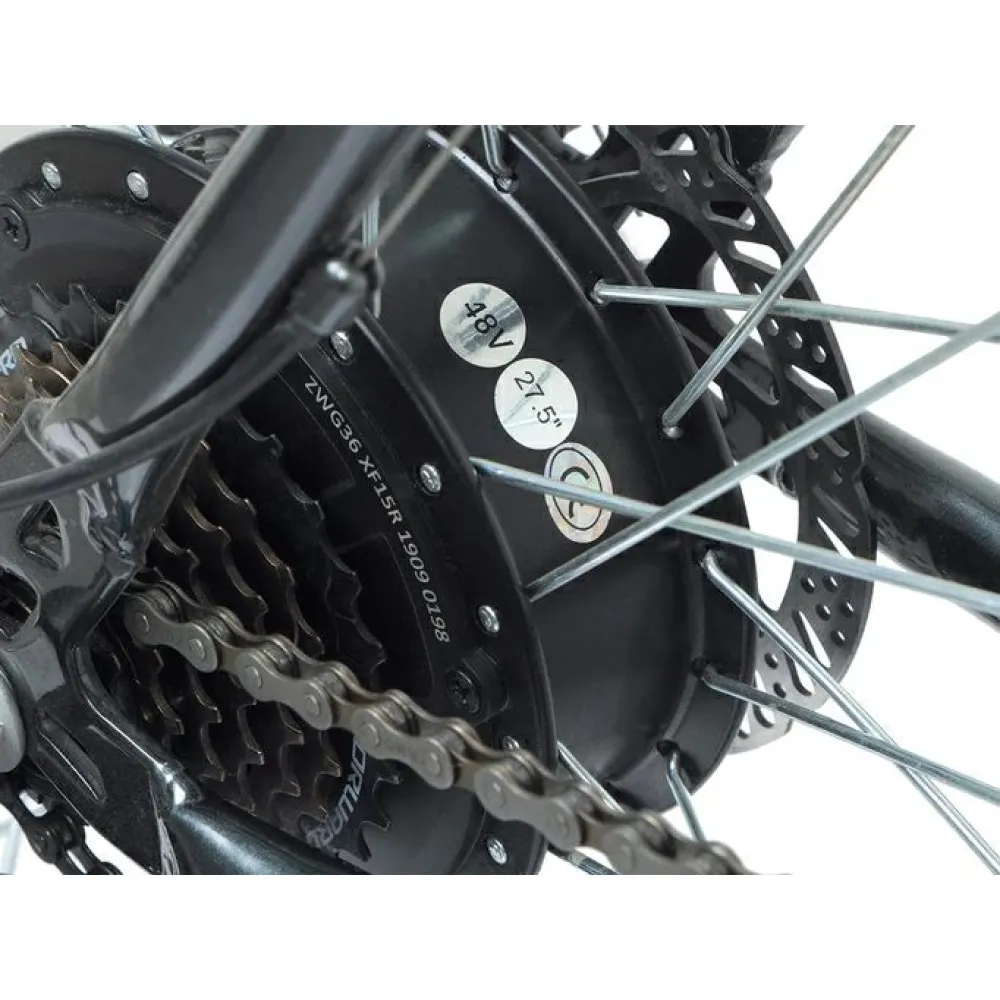 Техника оборудована мощным двигателем 500 Вт с типом привода - задний. Литий-ионный аккумулятор 12 Ач напряжением 48 В расположен под рамой для экономии полезного пространства. Передние амортизаторы хорошо смягчают наезд на дорожные неровности и нагрузку на позвоночник. Стальная рама имеет нескладную высокую конструкцию и рассчитана на взрослых пользователей обеих полов массой не более 120 кг. Удобное сидение и руль легко регулируются по росту райдера. Усиленные колеса 27,5 дюймов имеют защиту от проколов и хороший накат. Дисковые механические тормоза обеспечивают полную безопасность пользователя на дороге. Звуковой сигнал громко оповещает прохожих о приближении. Ждем ваших звонков и заказов.